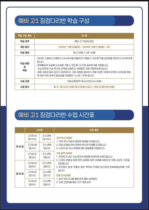 [예비고1] 12월 징검다리반 모집 안내