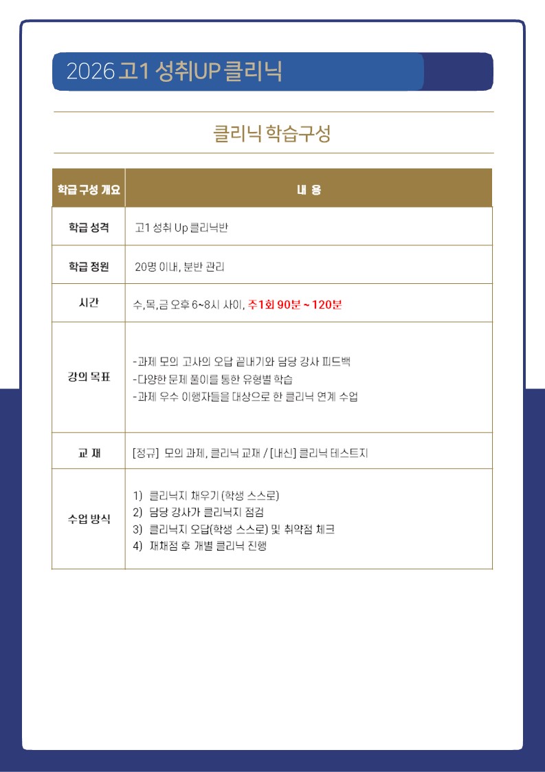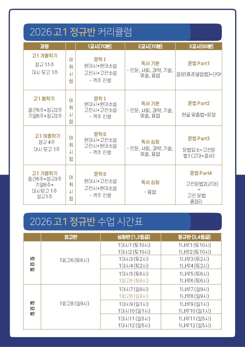 예비고1 징검다리반 (11월 29일/30일~ 4주 수업 ) 후 2026 정규반 수업이 시작됩니다.