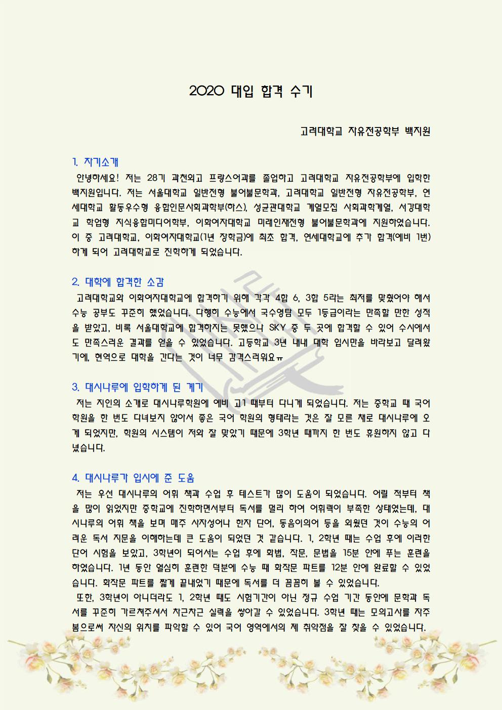 2020년 고려대학교 합격수기입니다.