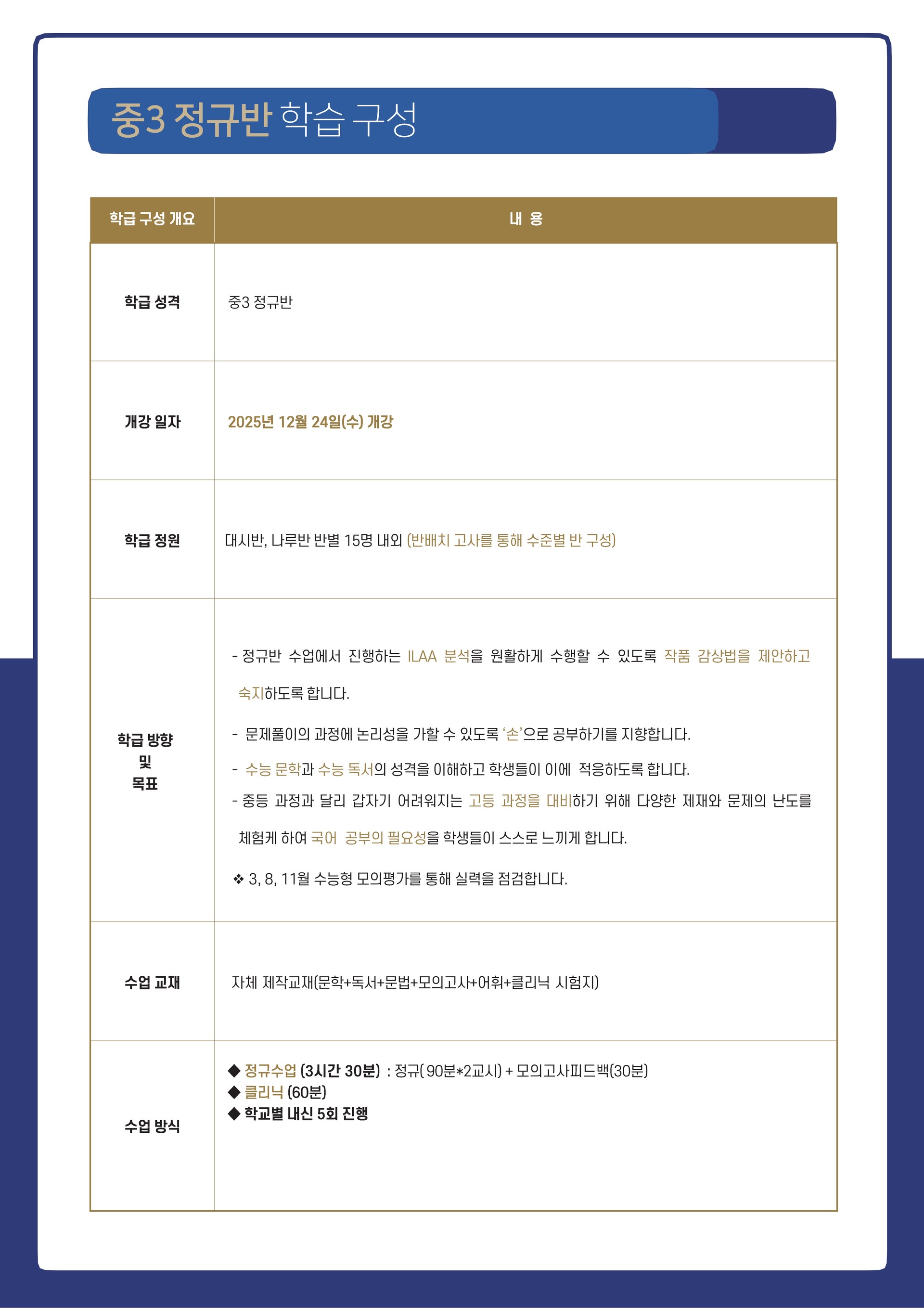 중등 3 커리큘럼