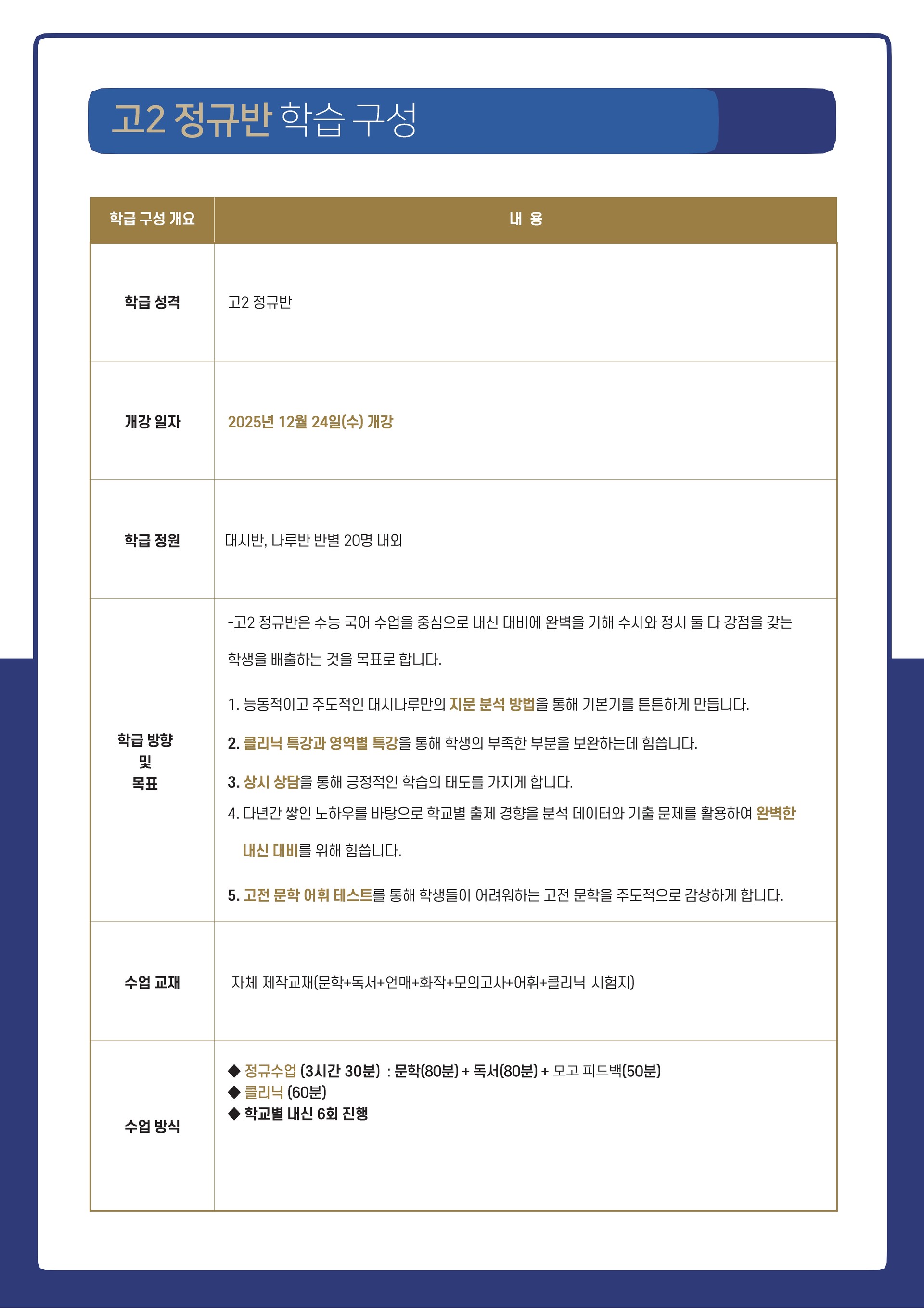 고등 2 커리큘럼