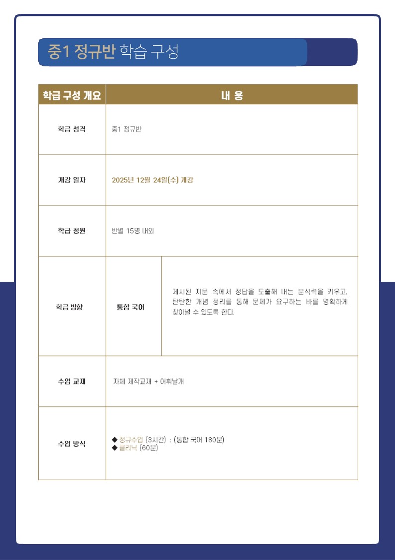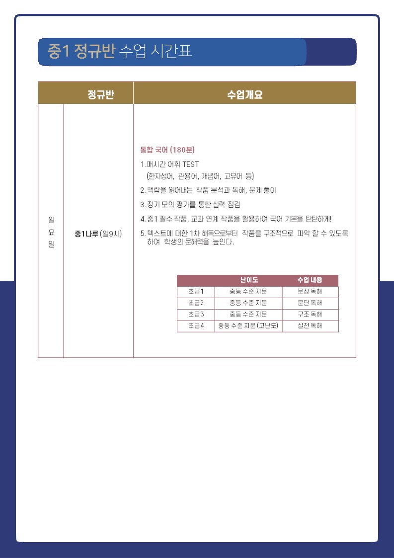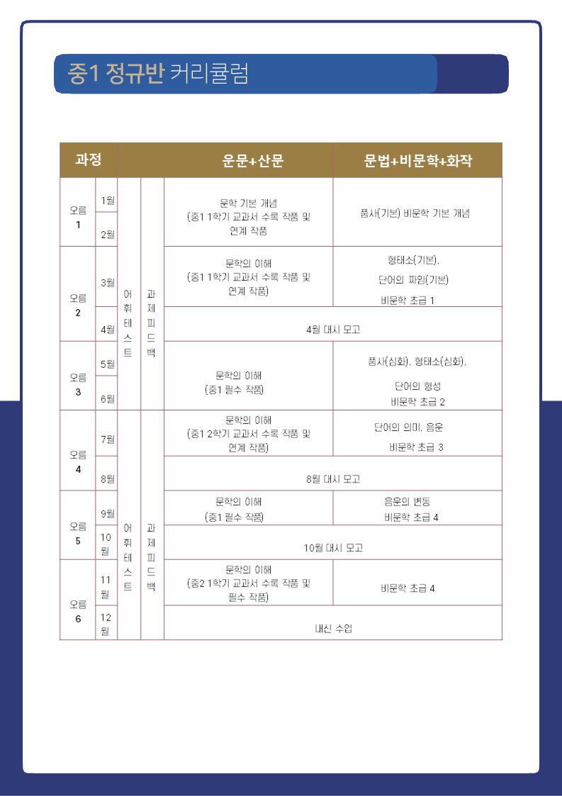 중등 1 커리큘럼